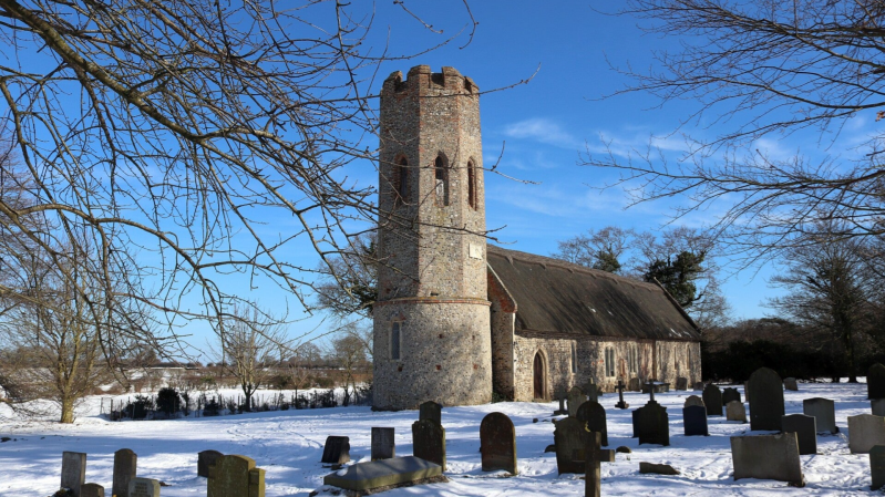 The village sign is located at the top of the track down to the church of St Mary, with a few houses close by. There is also another sign showing the direction of the church just across the road. The sign was unveiled by Lady Somerleyton on 5th March 2005. The sign was provided by community effort involving villagers, the Parish Council, local builders and the Somerleyton Estate and made by Harry Stebbings of the Village Sign People. It was mainly funded by the Suffolk County Council Locality Fund. The sign is topped with the church and looks like it is being attacked by a Barn Owl, a common bird in the area. The lower panel represents the agriculture in the area by a horse and cart loaded with hay or straw, pulled by a cart horse, possibly a Suffolk Punch. To the left of the horse is an old ash tree with a boundary stone in the form of a memorial. The memorial is to William Arnold Smith-Wynne who died in 1920 and is buried in Herringfleet churchyard. He did the excavation of St Olave’s Priory, not too far away. The ash tree was recently damaged by Storm Eunice in February of 2022.